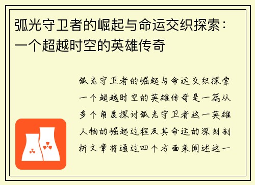 文章摘要:本文从基于猎刃配置的优化策略与战术应用角度出发,深入探讨了如何通过合理的猎刃配置优化战术执行,提升战术效率与成功率。文章首先对猎刃配置的核心要素进行了分析,解释了其在现代战争和游戏中的广泛应用。接着,结合多个具体战术应用场景,分析了猎刃配置如何影响战术选择、资源调配与敌我互动。随后,从优化...